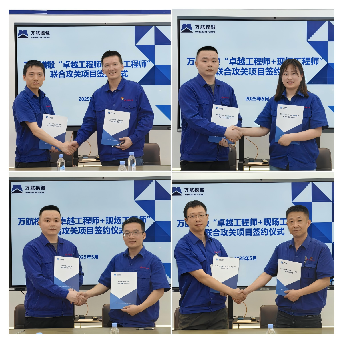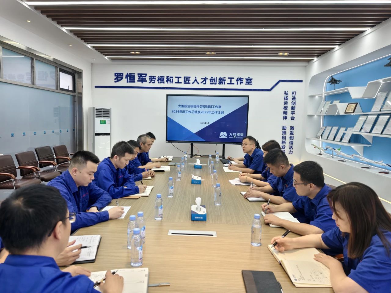 大型航空模鍛件勞模創(chuàng)新室工作室領(lǐng)銜勞模羅恒軍代表工作室對2024年工作室開展的精益設(shè)計、精益制造、人才培育成效及取得創(chuàng)新成果進行了總結(jié),就推進工作室2025年工作進行了安排。工作室4名技術(shù)科研人員、4名技能人員簽約了2025年度聯(lián)合攻關(guān)項目。